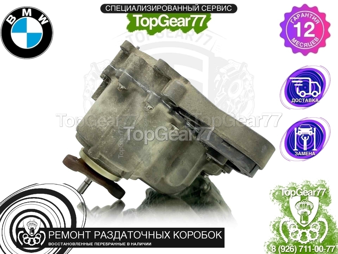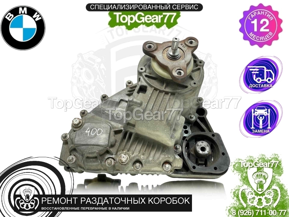Восстановленная (полностью перебранная) раздаточная коробка (раздатка) для BMW X3 E83 Рестайлинг ATC400 2006-2010, для подключения заднего карданного вала установлен плоский фланец.